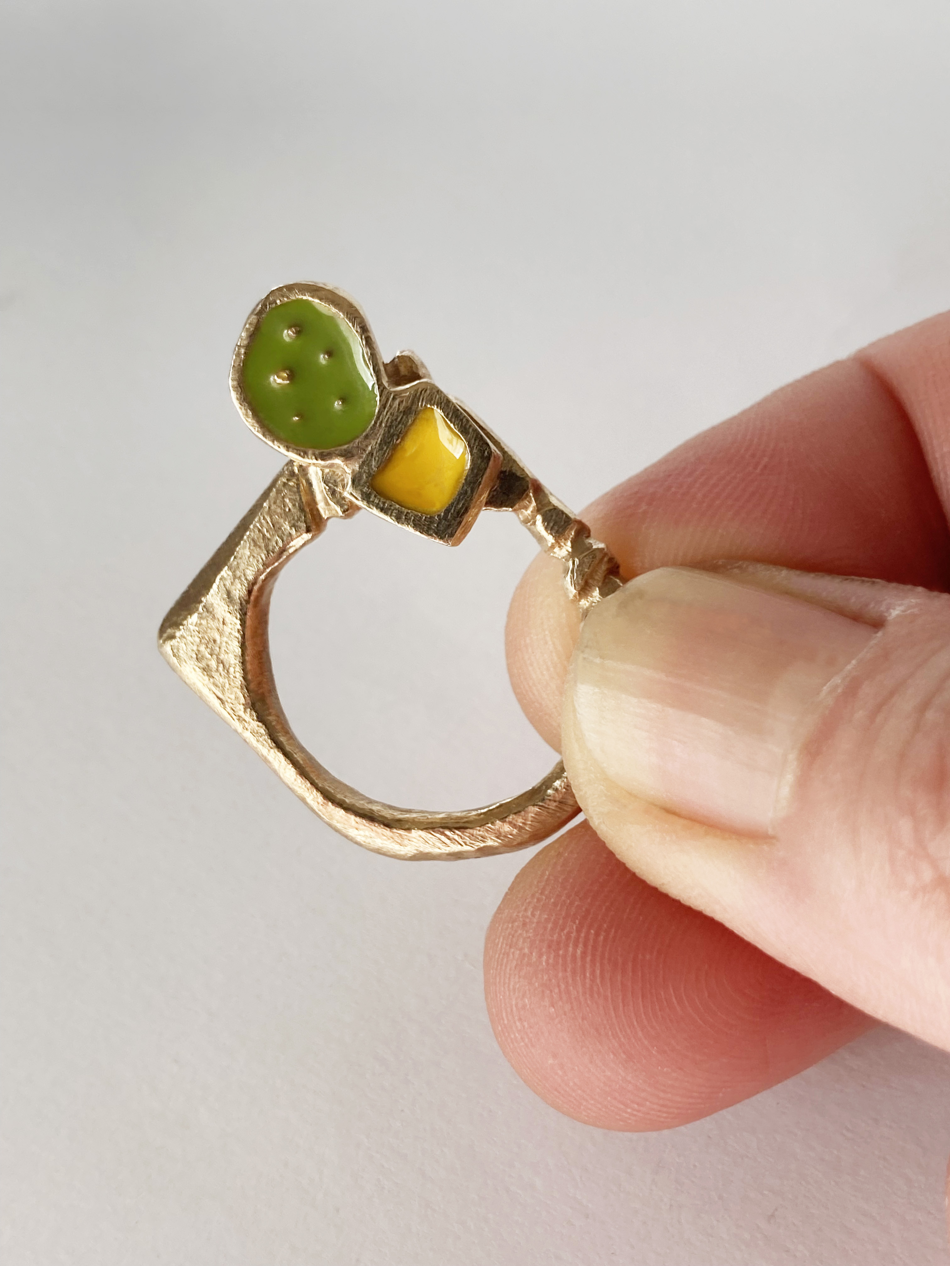 Bronzo e Smalto, colore verdino-vasetto giallo, misura 16