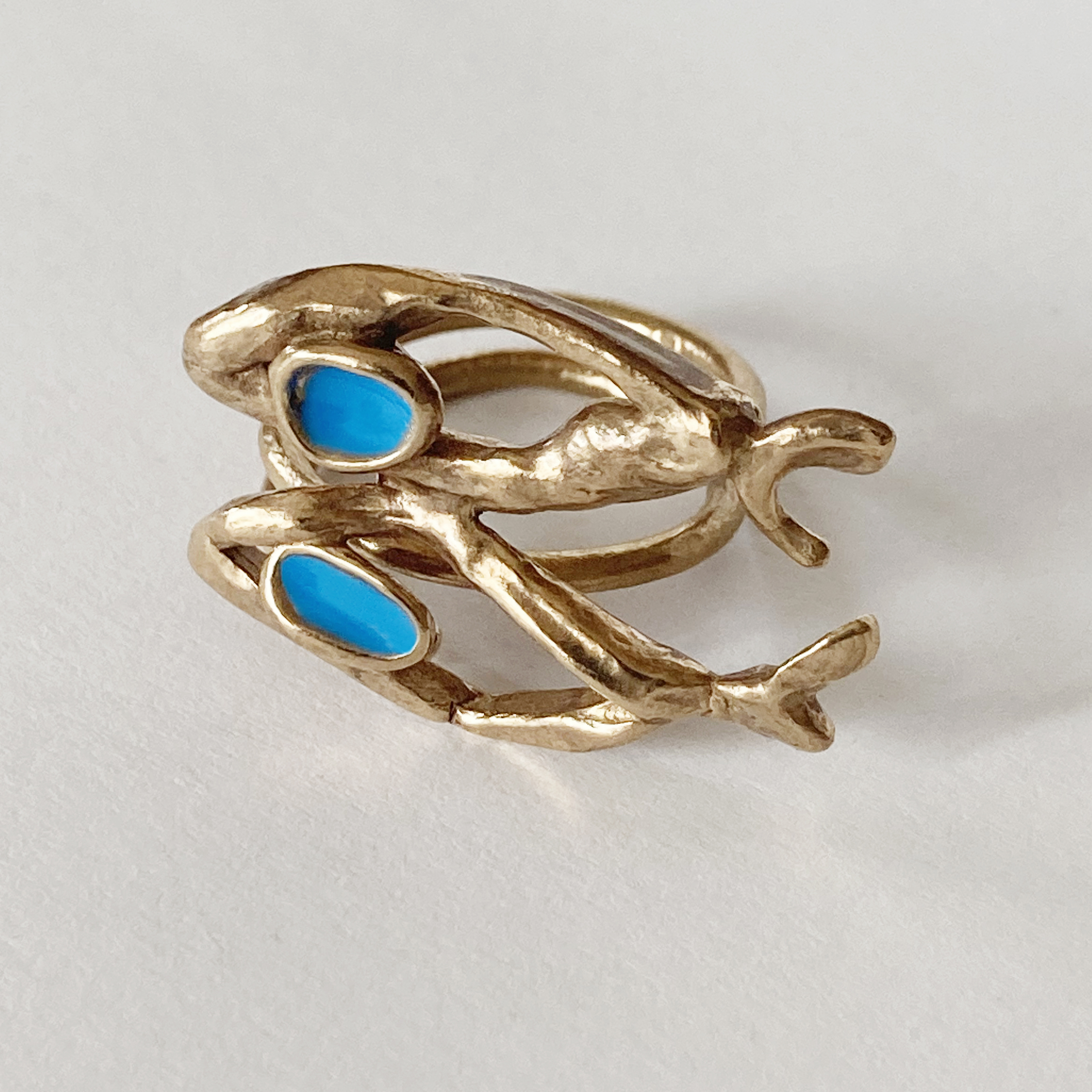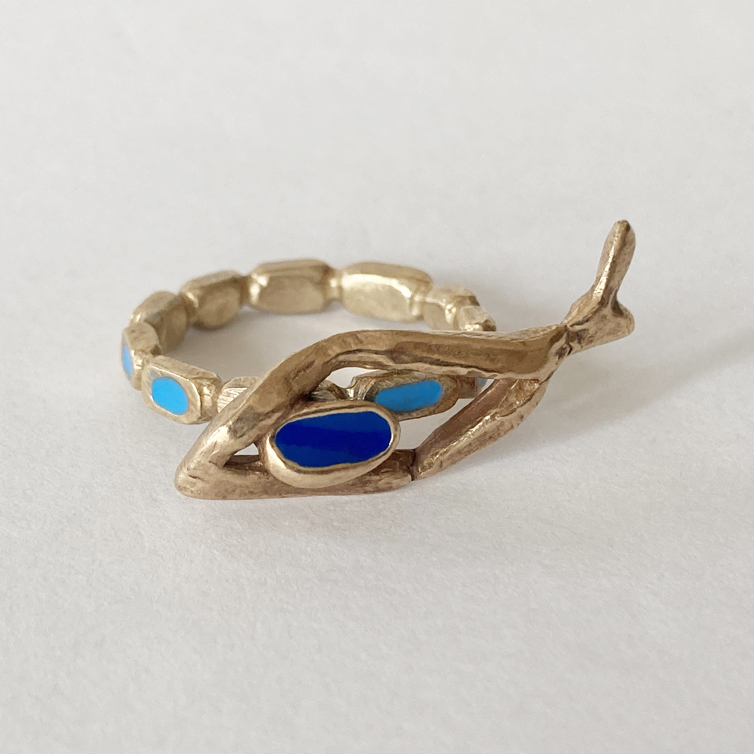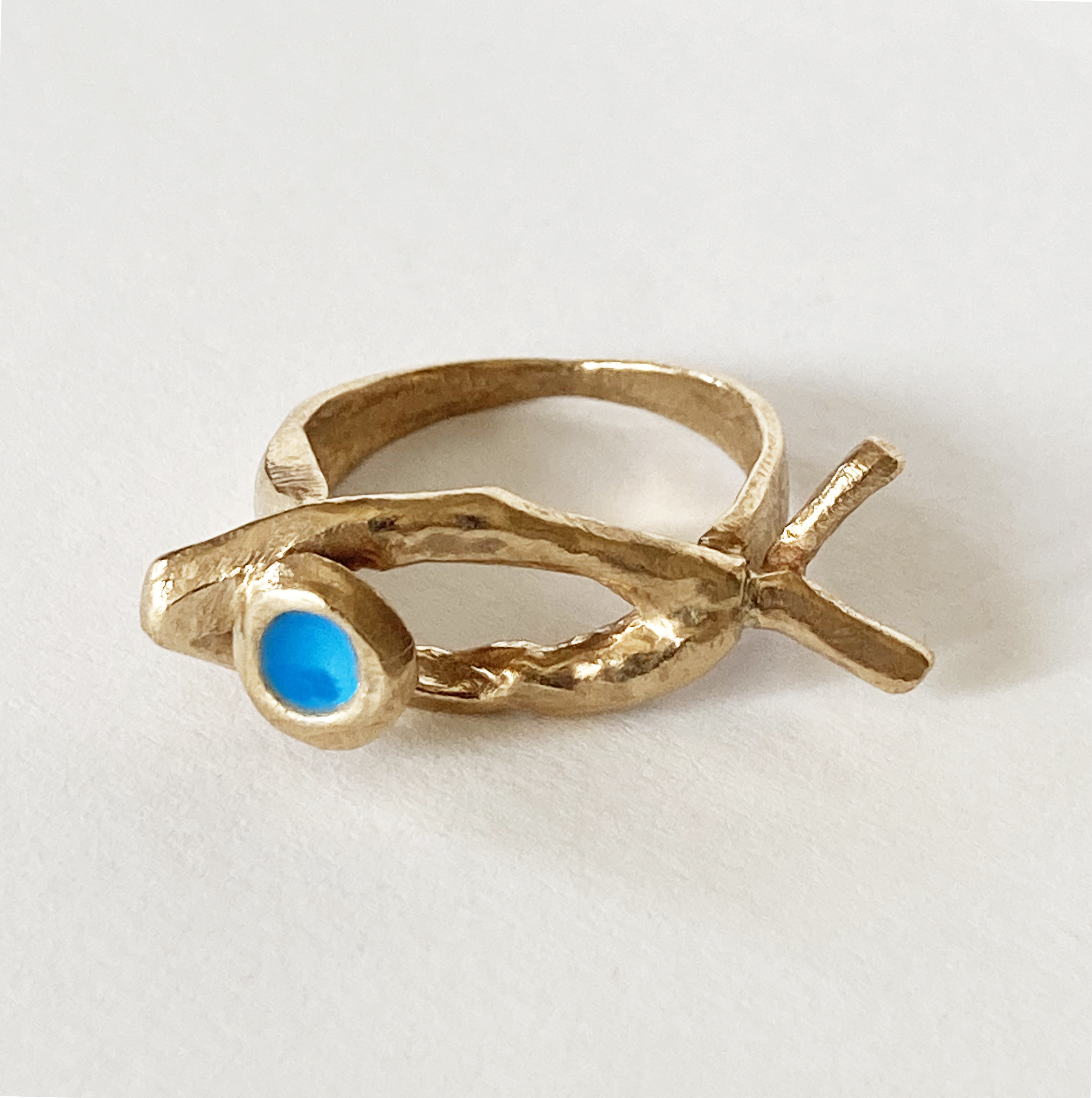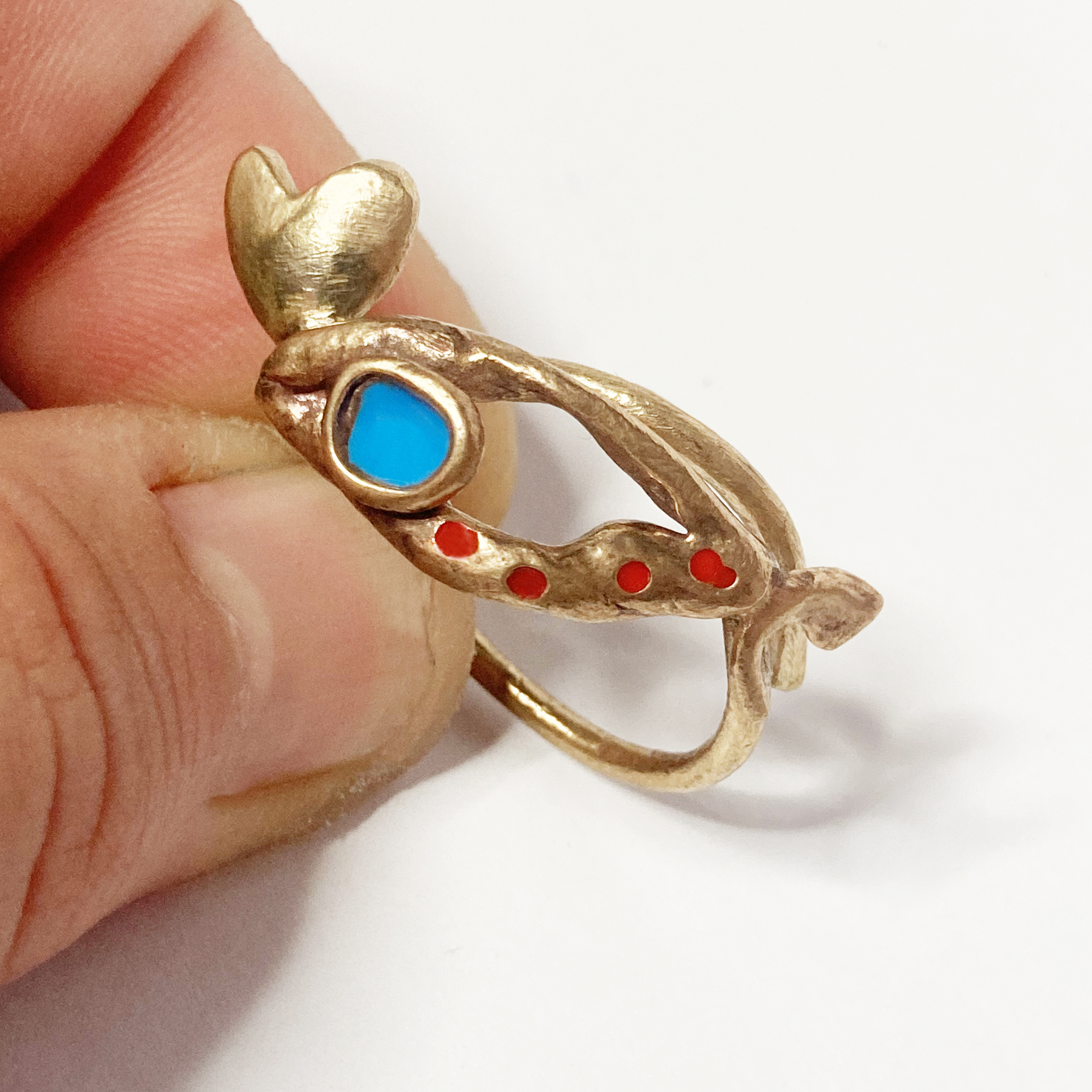 Bronzo e Smalto, colore blu-fedina celeste, misura 15
