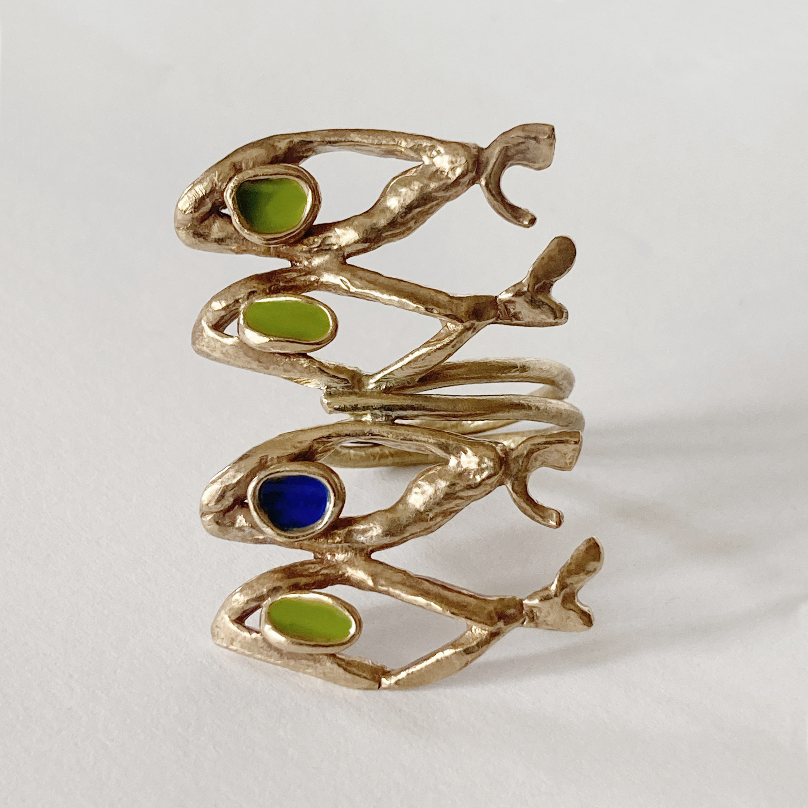 Bronzo e Smalto, colore verdino-blu, misura 16 (modificabile)