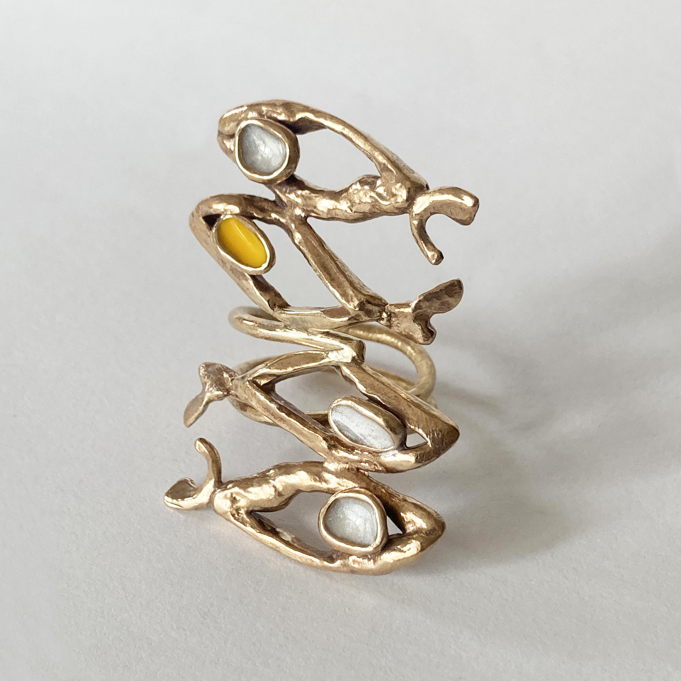 Bronzo e Smalto, colore bianco-giallo, misura 16 (modificabile)