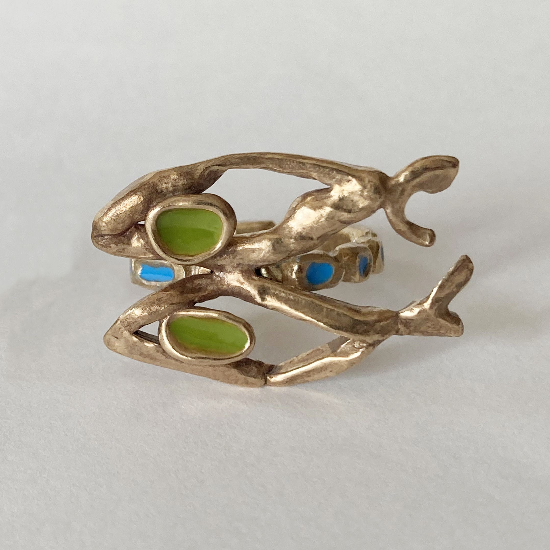 Bronzo e Smalto, colore verdino-fedina celeste, misura 15