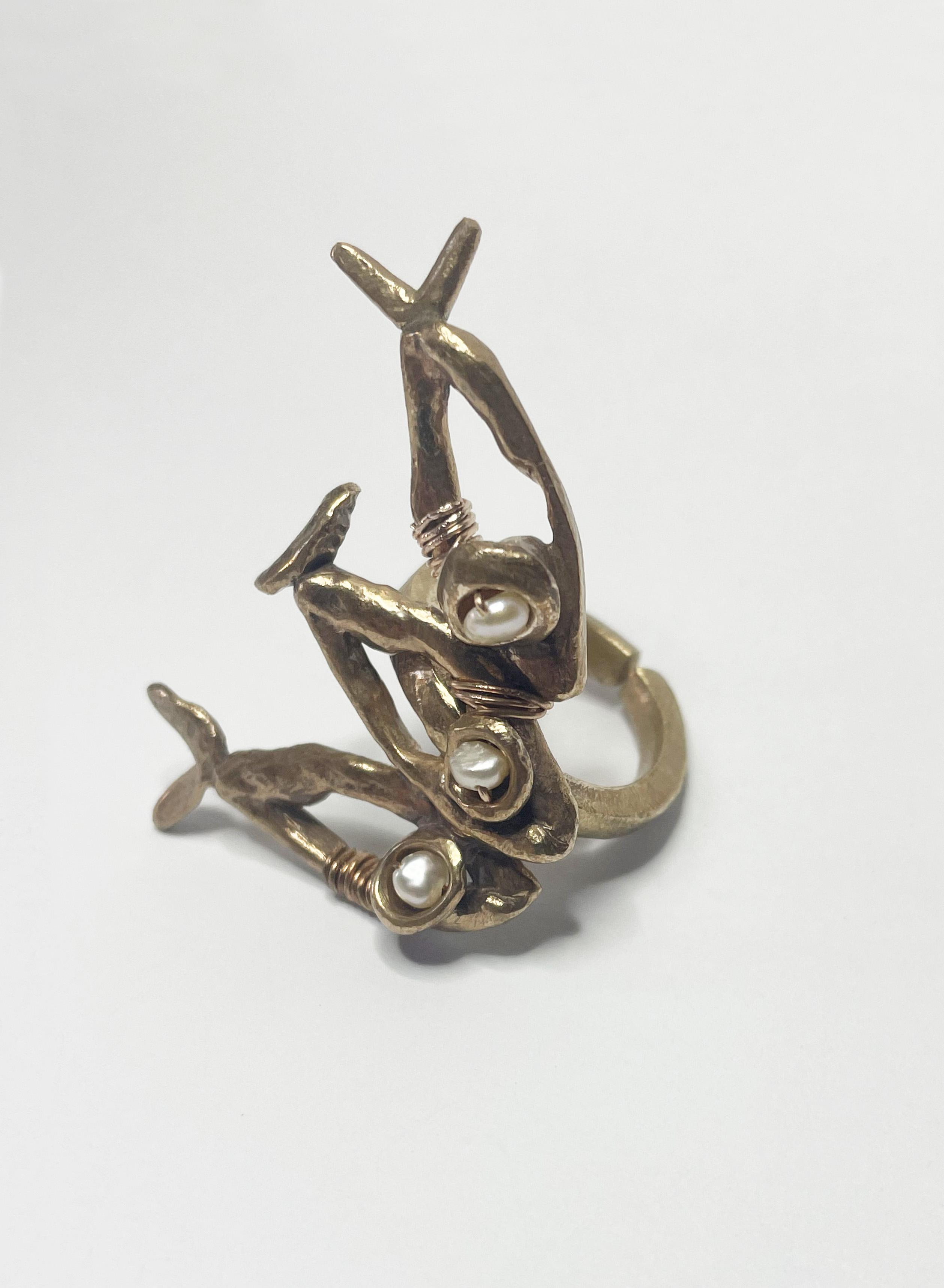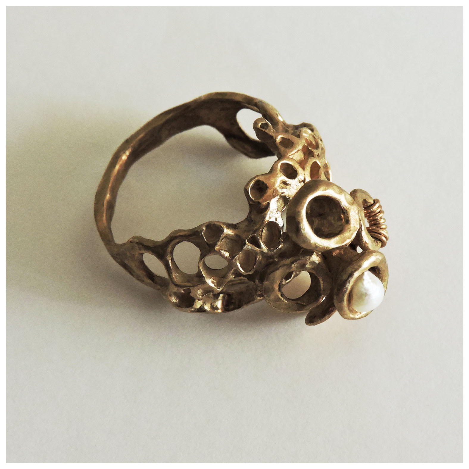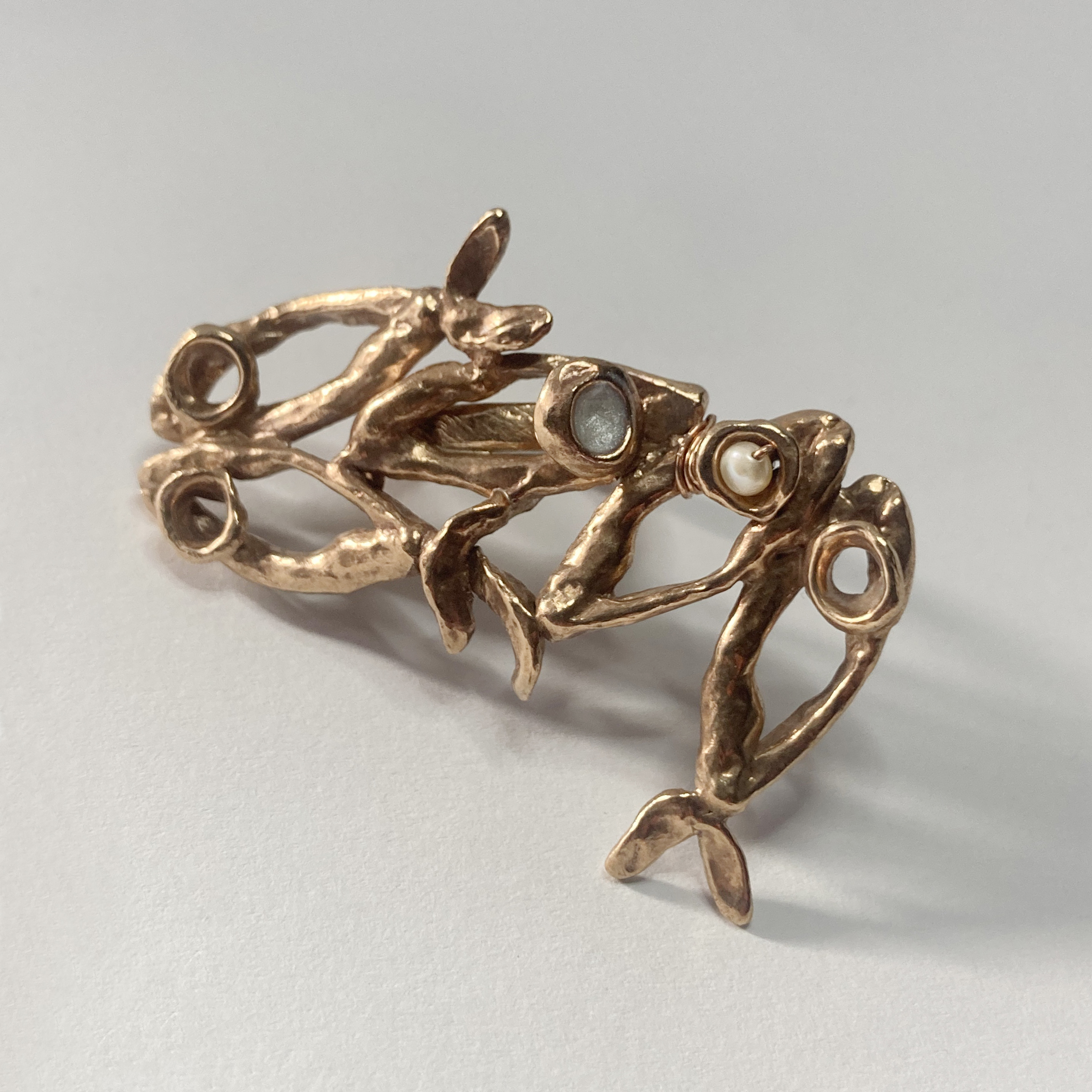 La collezione Helene, Smateria, Essenziale e tutte le altre realizzate in bronzo, senza smalti colorati, con piccole perle bianche infilate qui e là a dar luce al gioiello. Alcuni modelli vere e proprie sculture indossabili