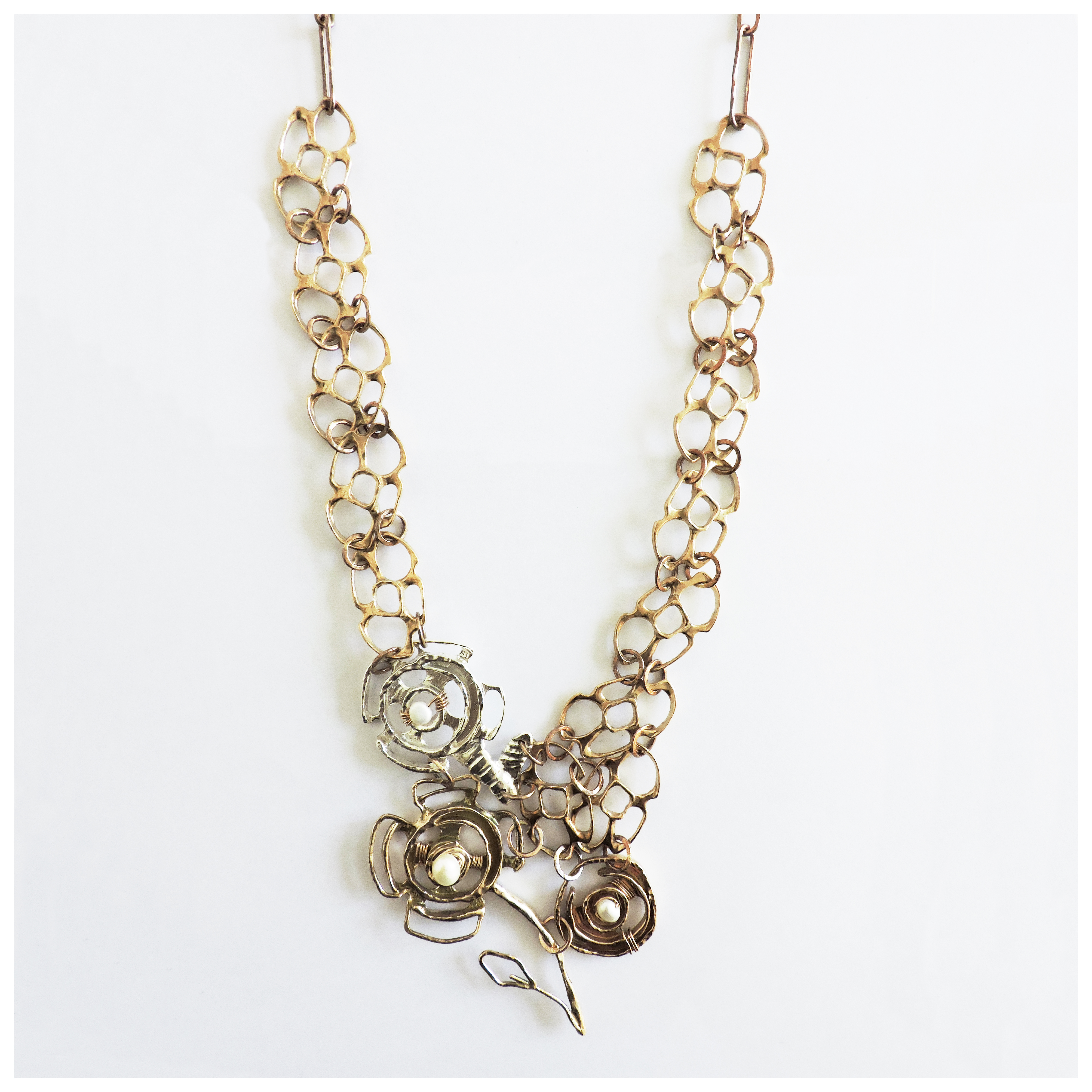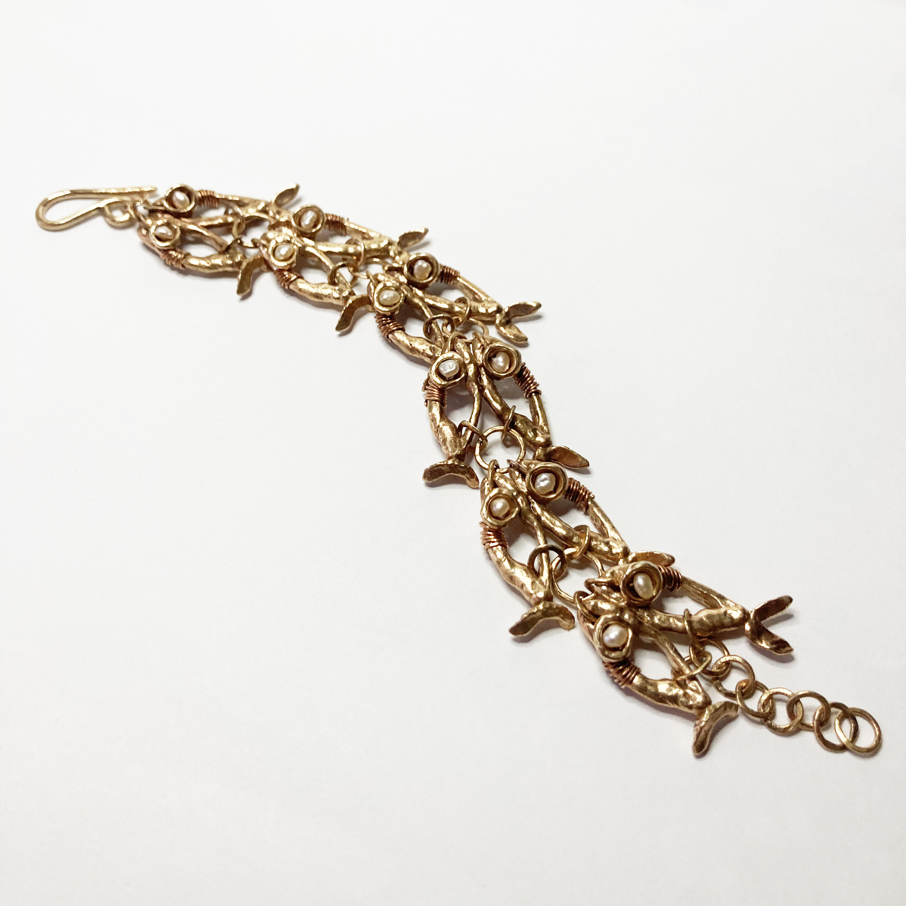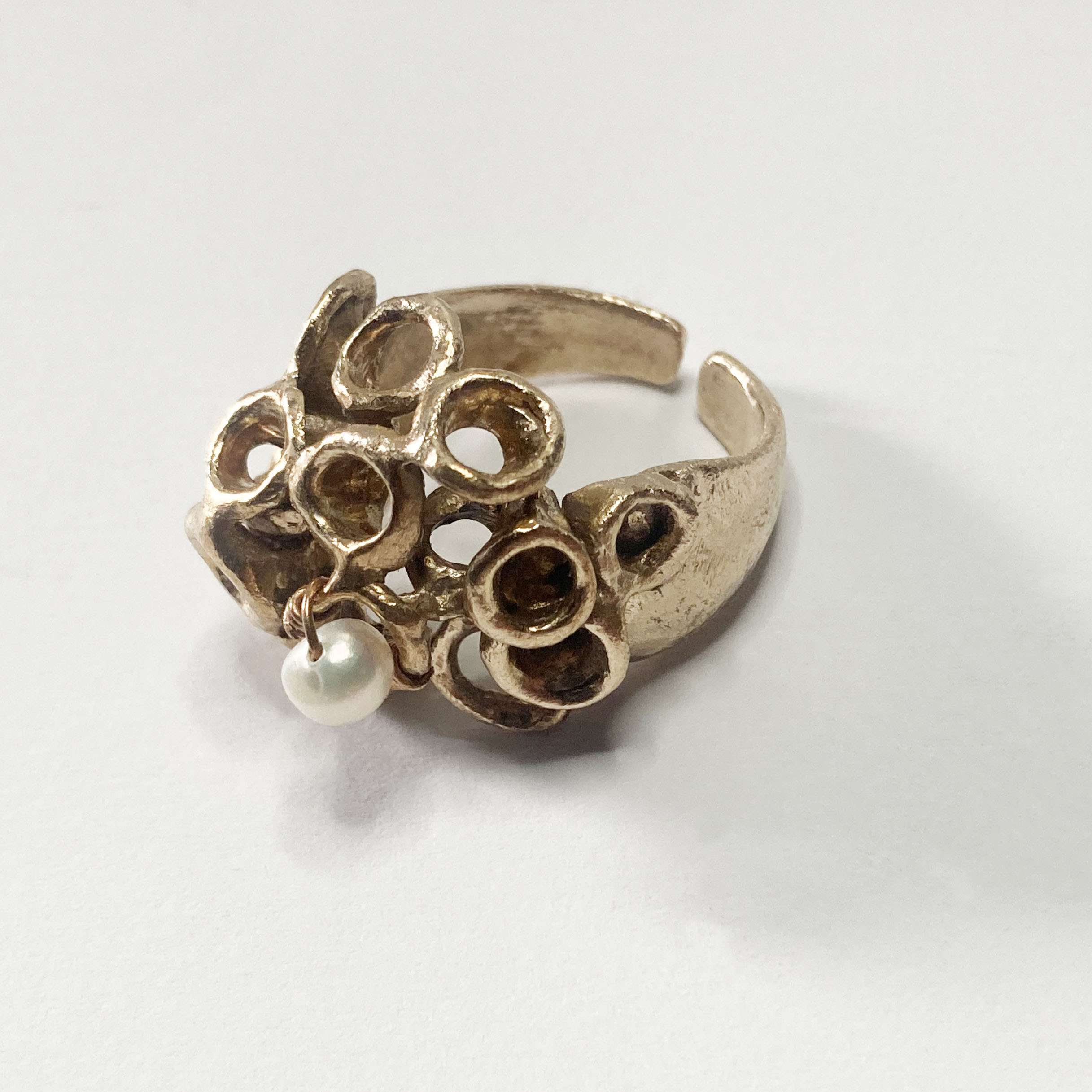 La collezione Helene, Smateria, Essenziale e tutte le altre realizzate in bronzo, senza smalti colorati, con piccole perle bianche infilate qui e là a dar luce al gioiello. Alcuni modelli vere e proprie sculture indossabili
