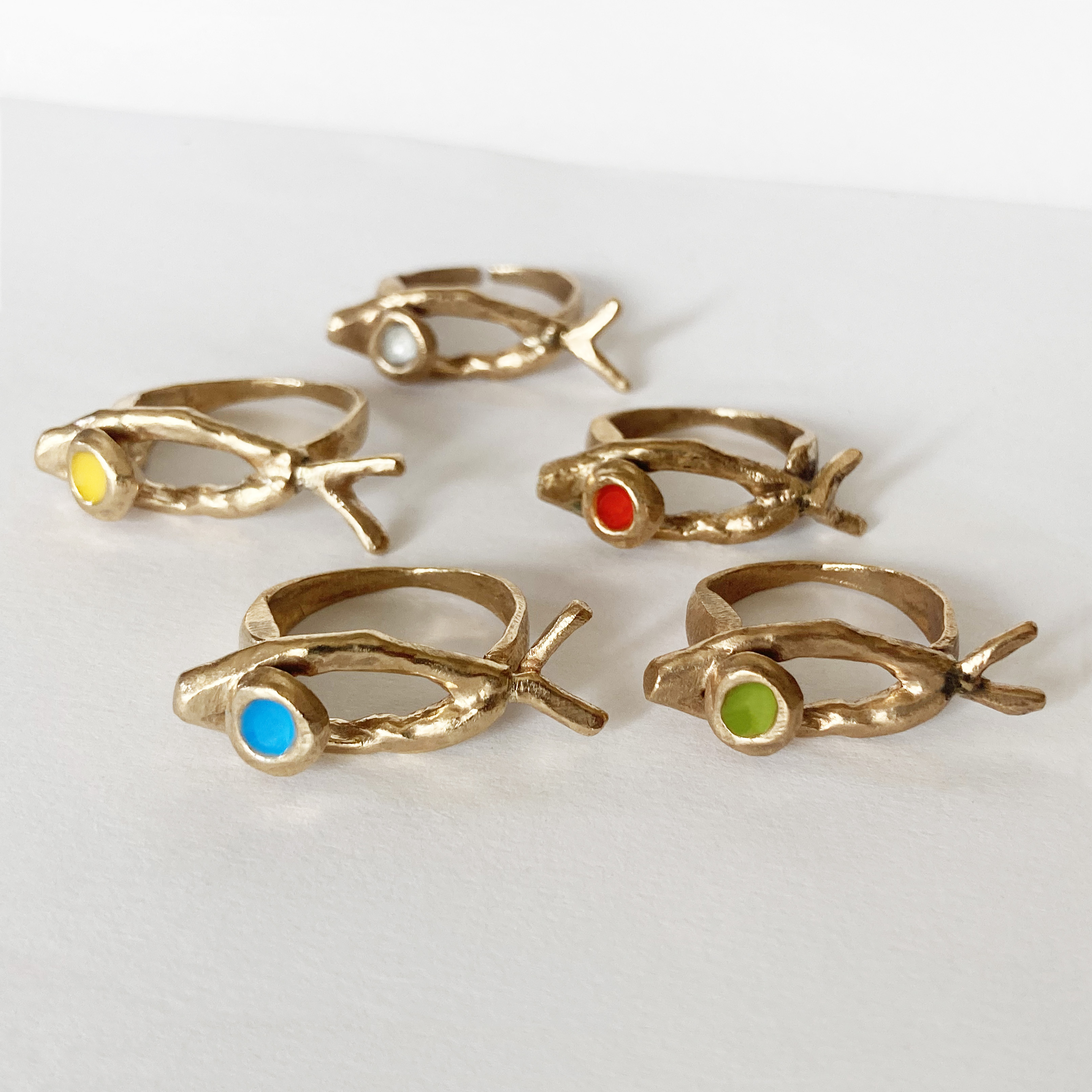 La collezione HELENE, SMateria, ESSENZIALE e tutte quelle in bronzo, senza aggiunta di smalti colorati, ma con piccole perle bianche infilate.