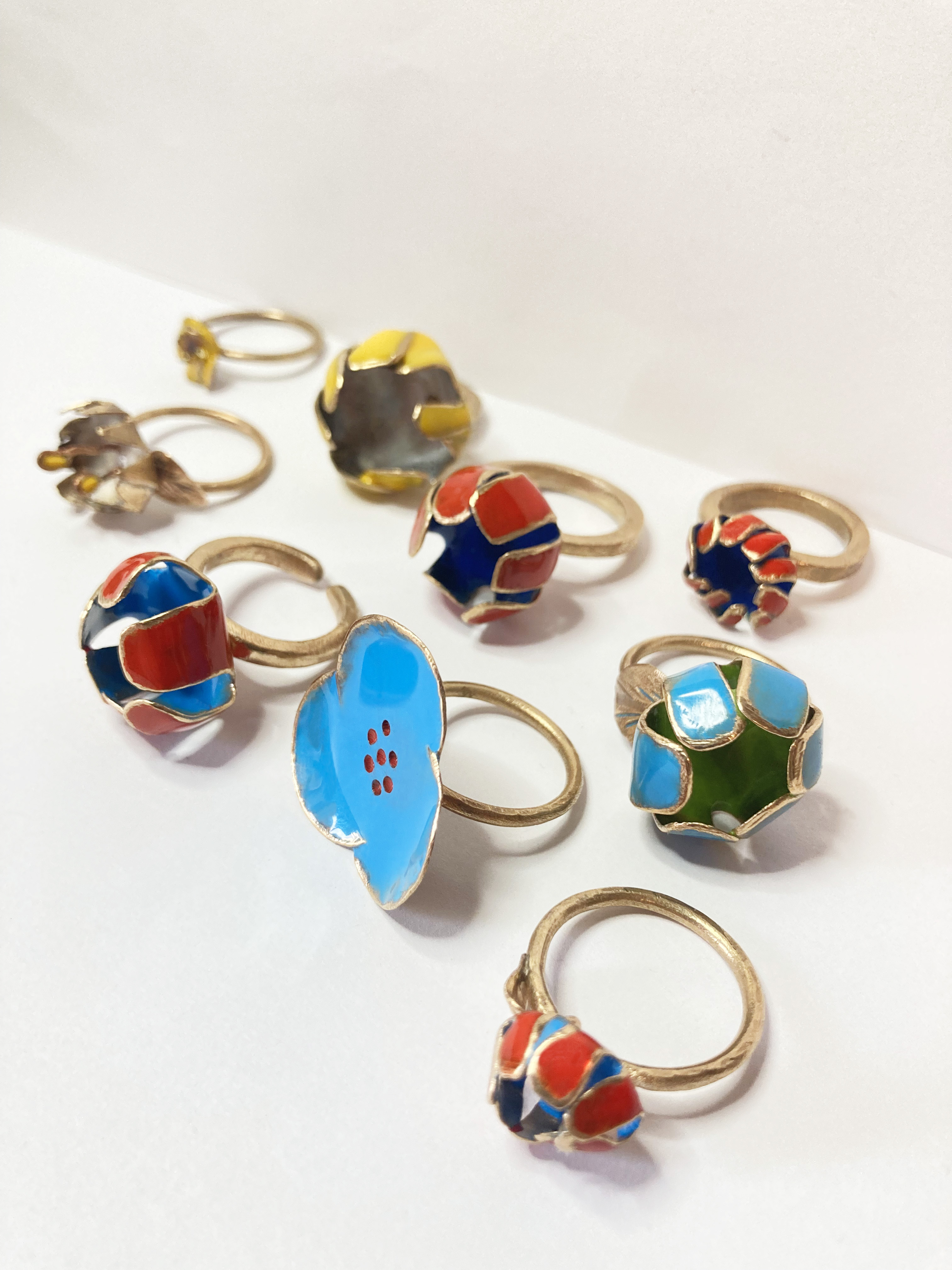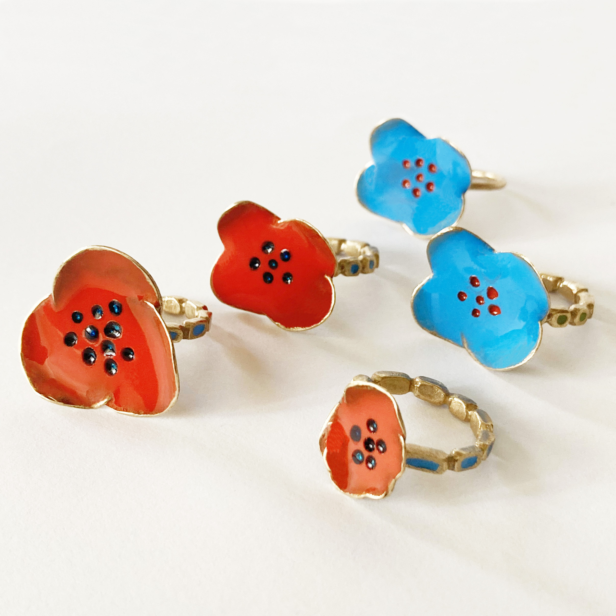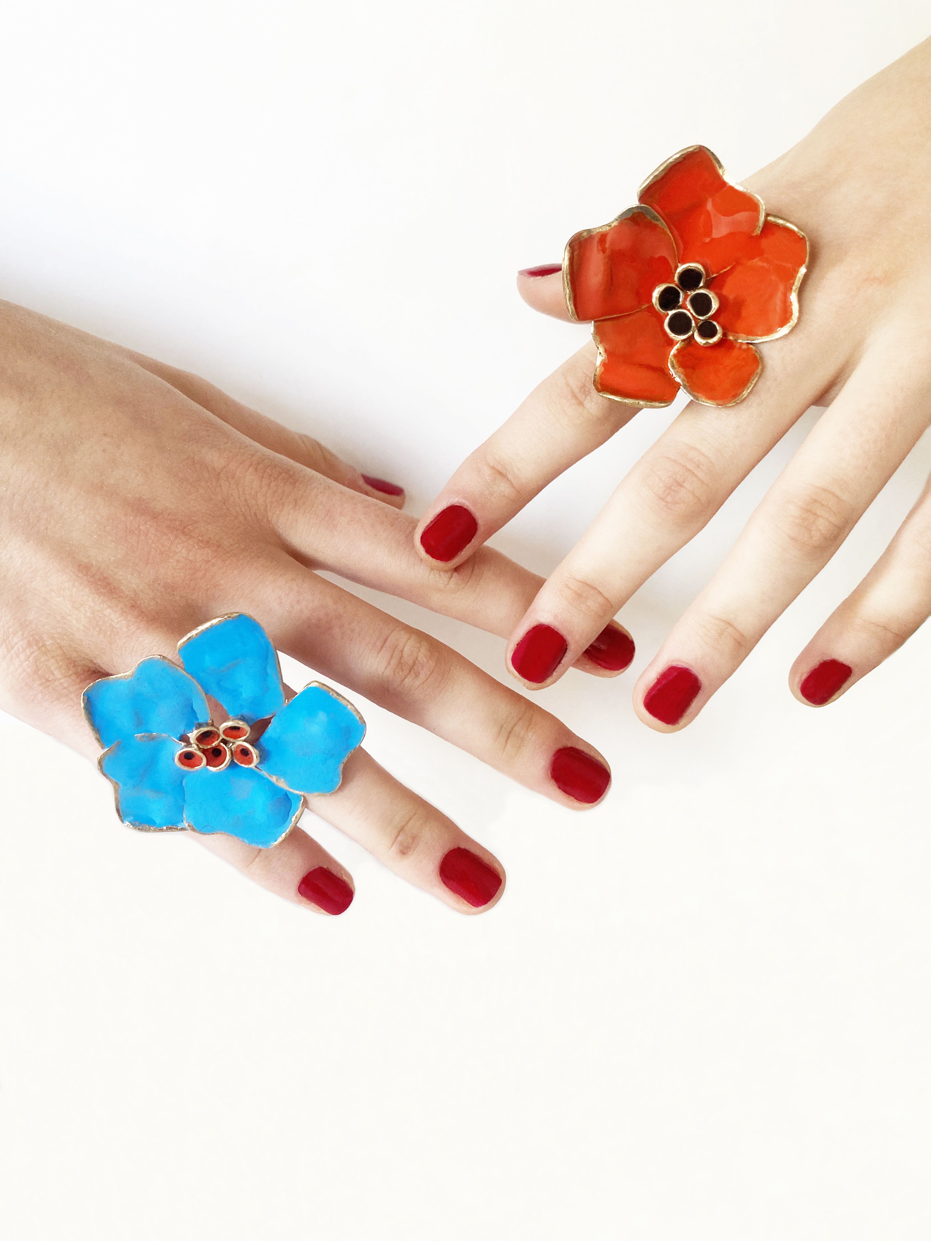 Anelli, orecchini, collane che richiamano la forma dei fiori, la bellezza dei loro colori, la calda stagione della fioritura.