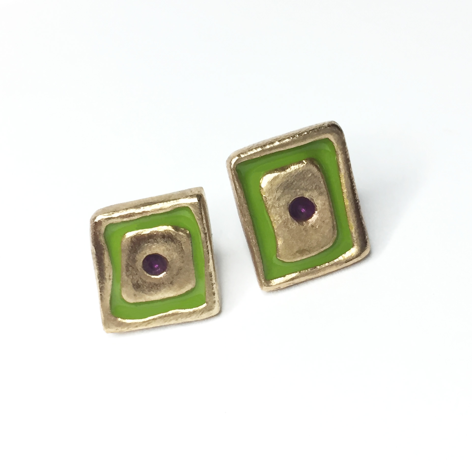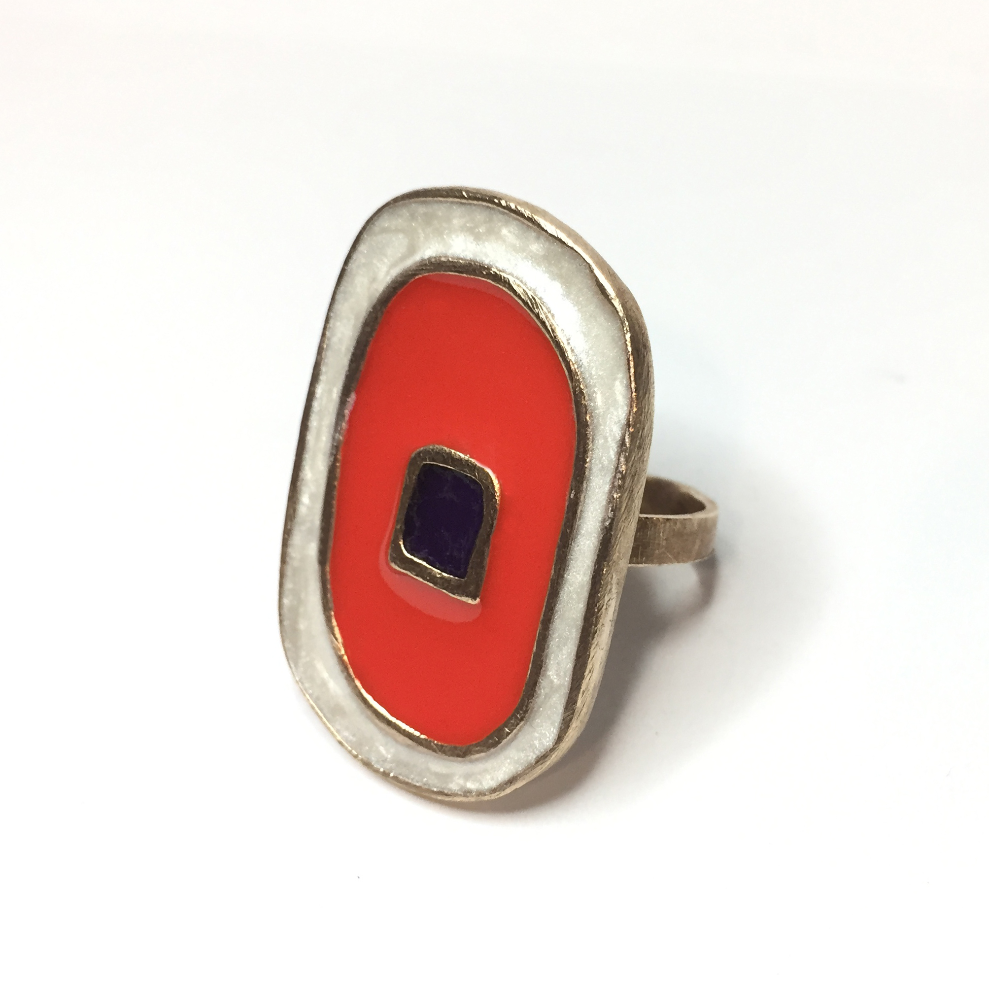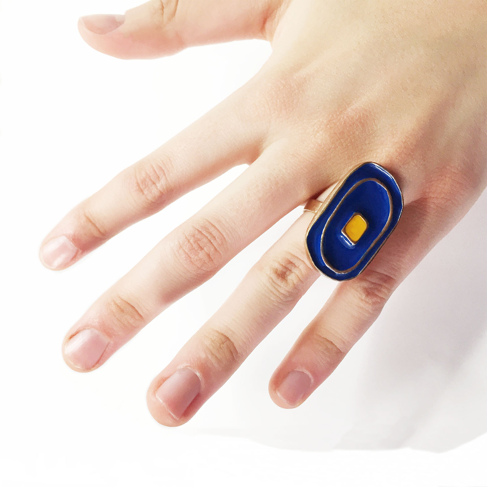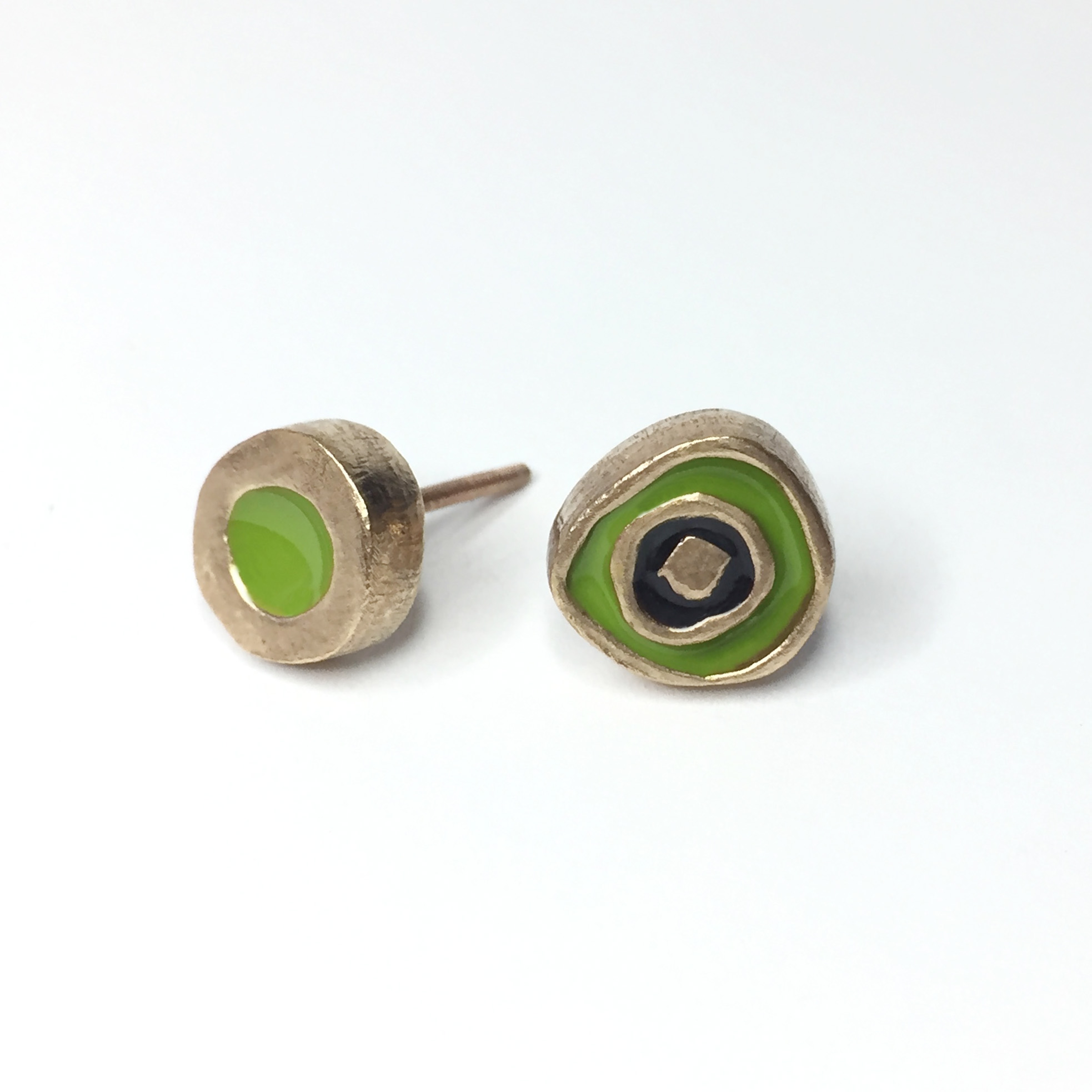 Cerchi concentrici e quadratini irregolari come provenienti da una geometria distorta, forse più in linea con l’universo e con il disegno a mano libera. Questa collezione è nata nel 2006 come progetto per la mia tesi di laurea, e poi si è ampliata, nel corso degli anni, di nuove diverse combinazioni colore.